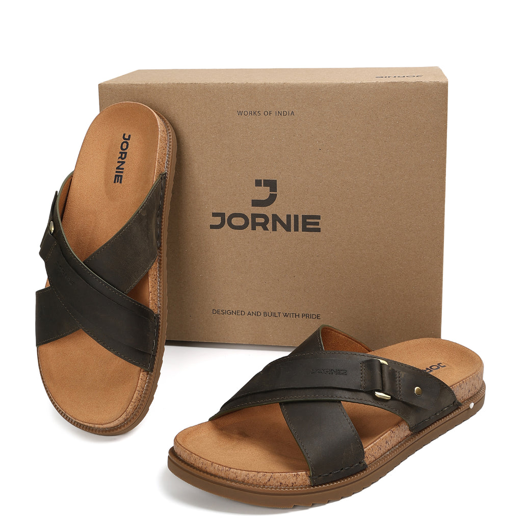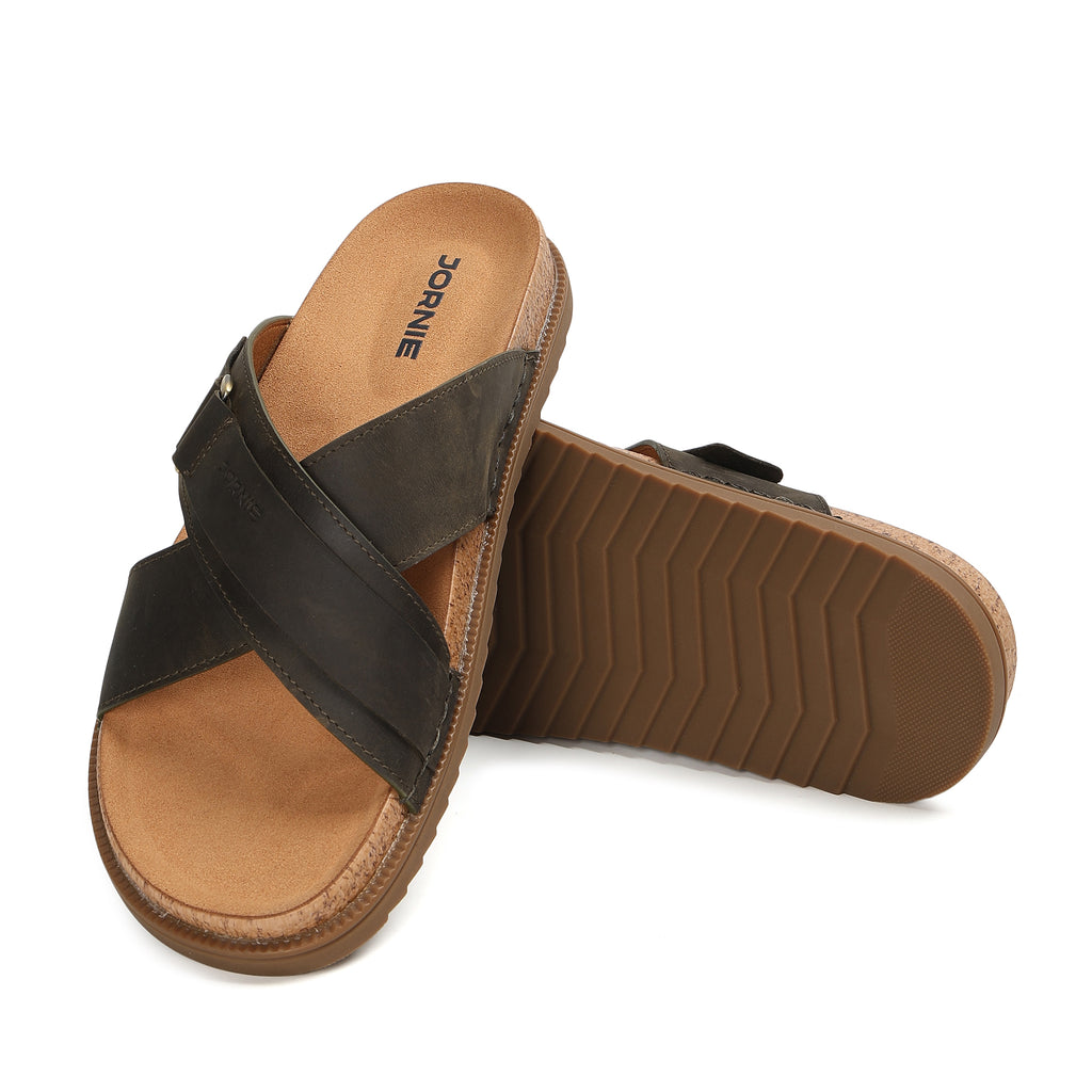 The JORNIE – Tidal Cross sandal impress with its excellent fit very casual natural design thoughtfully crafted to suit more casual and everyday wear. Thanks to its thick upper made from Premium Oil leather which hugs the foot like a second skin. The anatomically design footbed is a key factor here with micro suede top layer and durable Polyurethane base provide exceptional arch support and comfort.